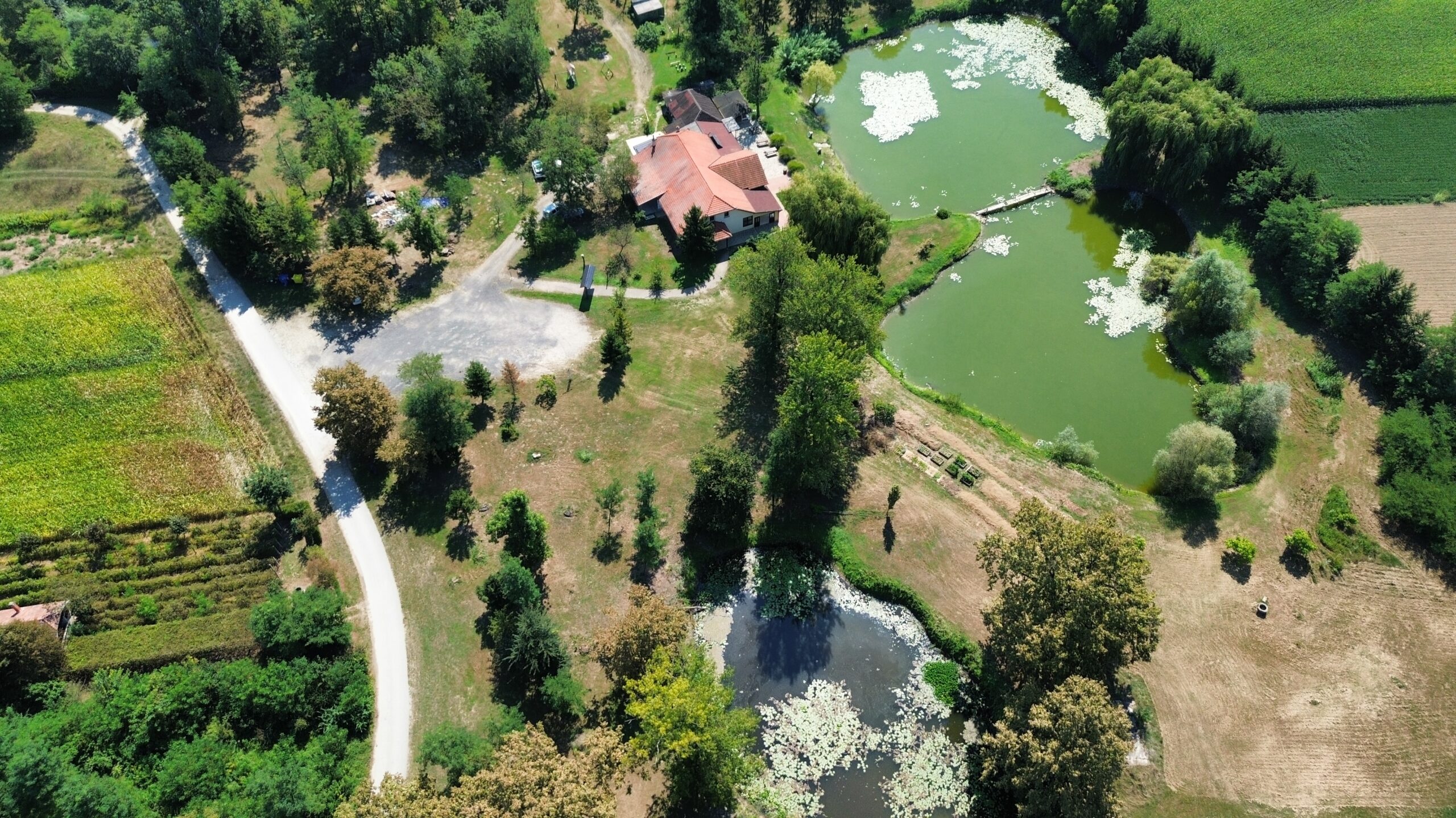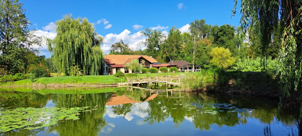 Vanjski prostor ukupne površine do 3 ha sadrži mnogo zelene površine, tri prirodna jezera, vrt i šumu, kao i stolove i klupe za jelo i odmor.
